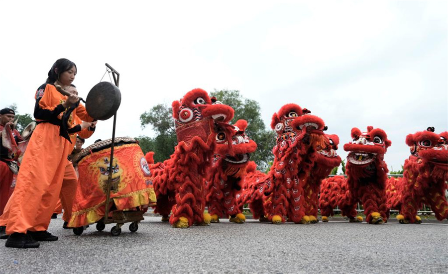 People perform lion dance to welcome Chinese President Xi Jinping in Kuala Lumpur, Malaysia, April 15, 2025. Xi arrived here Tuesday for a state visit to Malaysia. [Xinhua/Yu Dongsheng]
