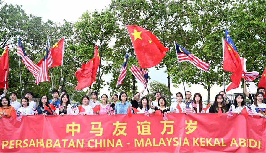 People welcome Chinese President Xi Jinping in Kuala Lumpur, Malaysia, April 15, 2025. Xi arrived here Tuesday for a state visit to Malaysia. [Xinhua/Yu Dongsheng]