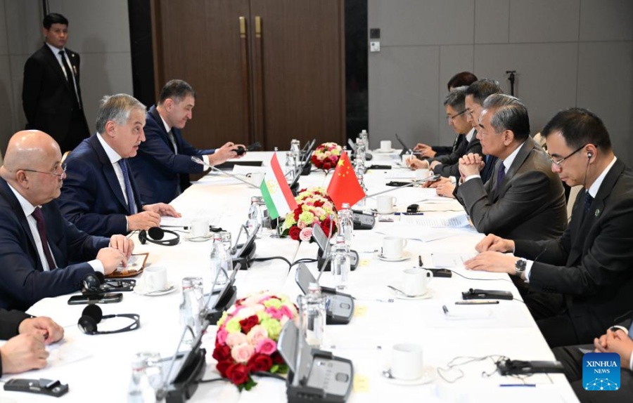 ALMATY -- Wang Yi, member of the Political Bureau of the Communist Party of China Central Committee and Minister of Foreign Affairs, met with his Tajik counterpart Sirojiddin Muhriddin here on Friday.