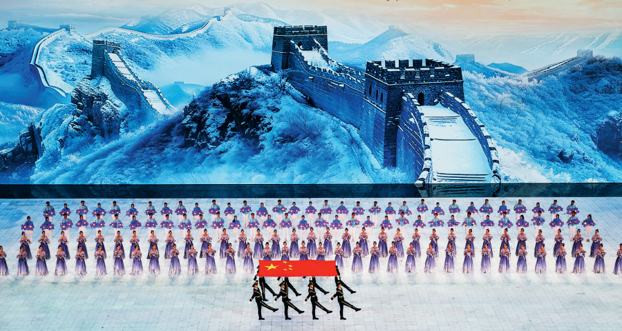 Flagbearers carry the Chinese national flag into the stadium during the opening ceremony of the Ninth Asian Winter Games, Harbin, Heilongjiang Province, February 7, 2025. PHOTO BY XINHUA REPORTER CHEN YICHEN