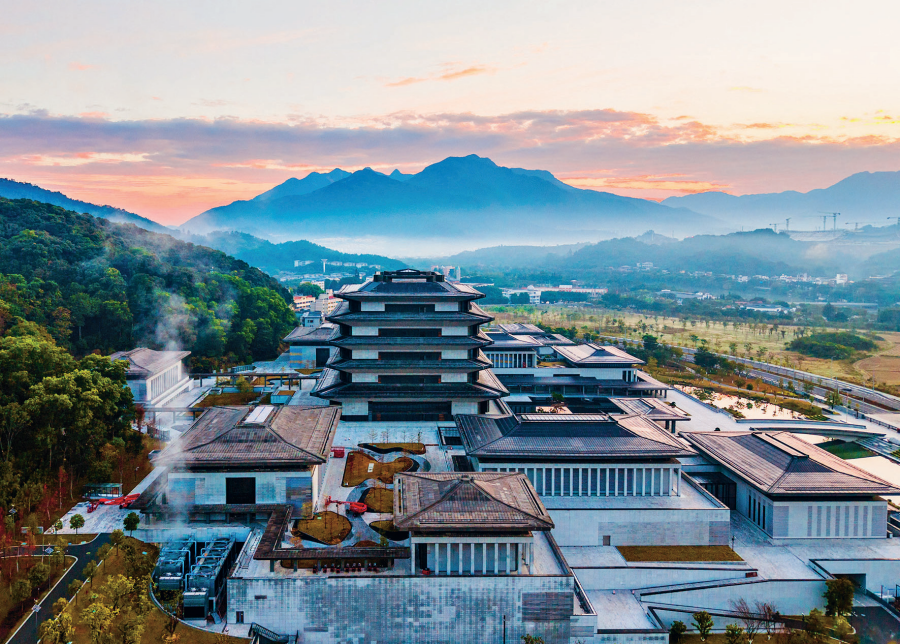 The Guangzhou branch of the China National Archives of Publications and Culture is captured in the early morning light, December 3, 2024. China, a civilization with over 5,000 years of history, now stands tall in the East. Its population of more than 1.4 billion people is advancing with confident strides toward modernization—an endeavor that represents tremendous progress for all of humanity (drone photo). PHOTO BY XINHUA REPORTER LIU DAWEI