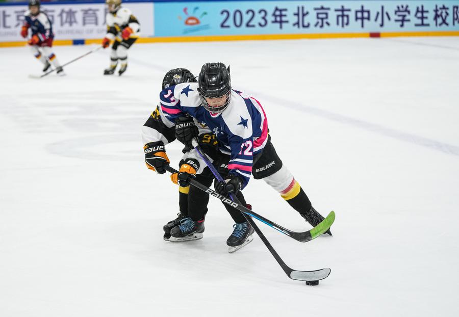 A Beijing junior ice hockey competition is held at the National Indoor Stadium in 2023. [Xinhua/Wu Zhuang]